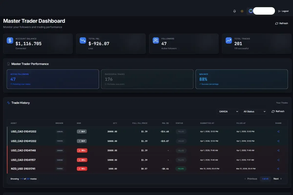 Our system includes a 3% max loss threshold per trade. If any single trade causes your account to reach a 3% drawdown, the position is automatically closed. This helps limit losses on trades and keeps one bad trade from causing major damage to your account